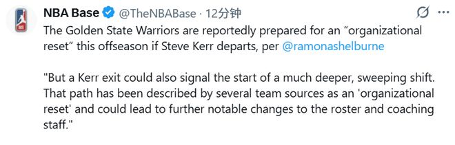 同时,科尔的离开,也可能意味着勇士迎来全面重置,迎来一场规模更大、覆盖面更广的全面变革。多名球队内部消息人士将这条路定义为“球队组织层面全面重组”,此举大概率会引发阵容名单与教练组的重大洗牌调整。