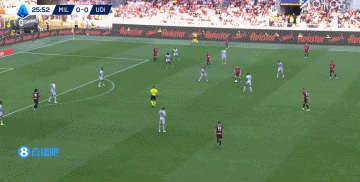 对米兰,乌迪内斯主打一个不惧怕。开赛之后他们就跟阿莱格里来了对轰模式,估计这是AC米兰人很想不到的比赛走向了。第26分钟,一次反击乌迪内斯轻松从边路来到中路,再回到边路。虽然射门是运气加分了,不过,整个的经过确实是给米兰打了个够呛,速度跟不上的,实际对抗也是吃了亏。
